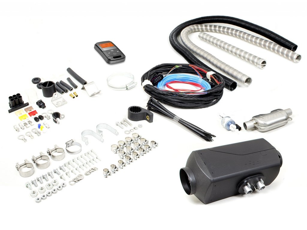 Teplovzdušné kúrenie druhej generácie s výkonom 2 kW určené na ohrev kabín v úžitkových vozidlách, dodávkach, mikrobusoch, obytných automobiloch a lodiach